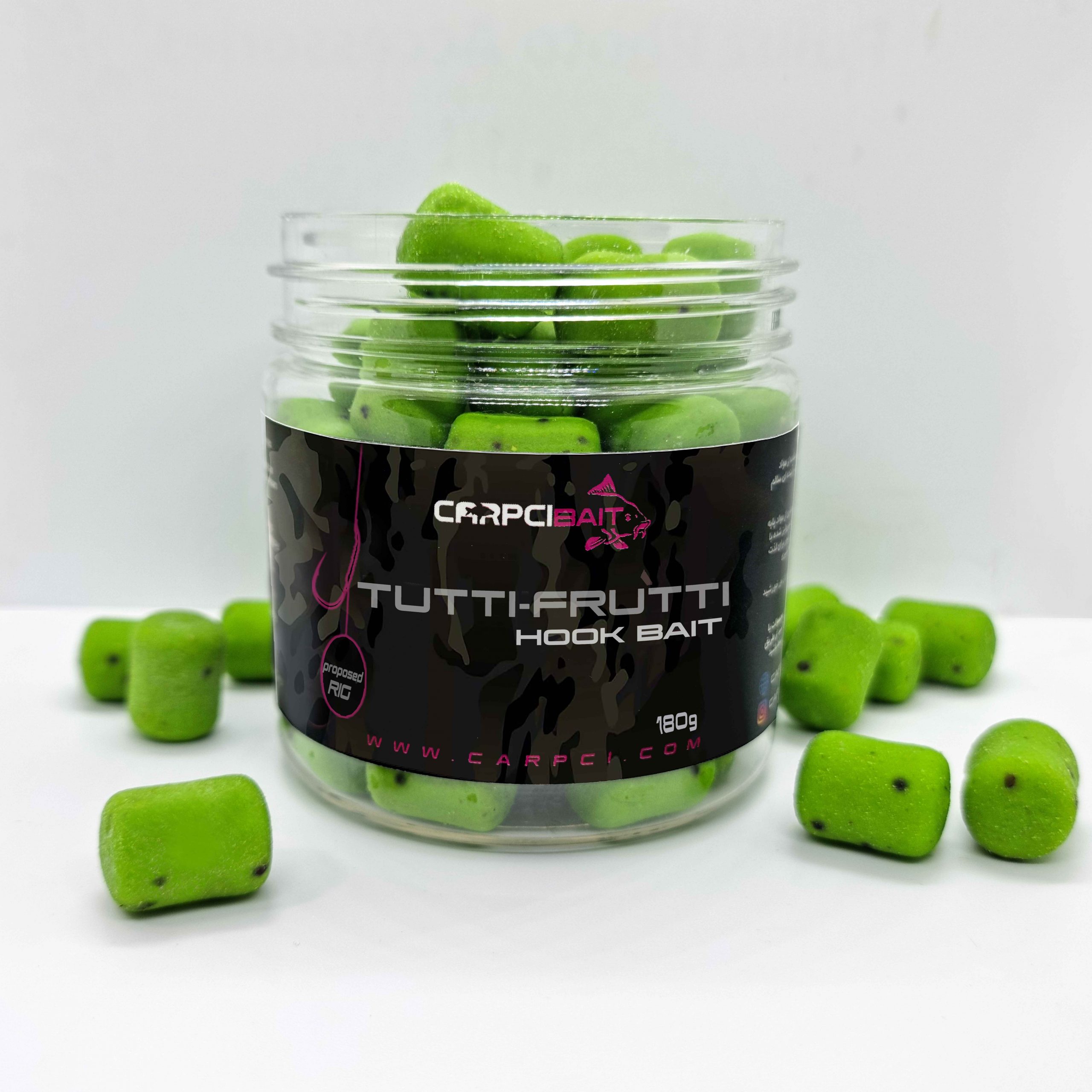 هر قوطی حاوی 180 گرم بویله هوک بیت توت فرنگی سایز 16mm است